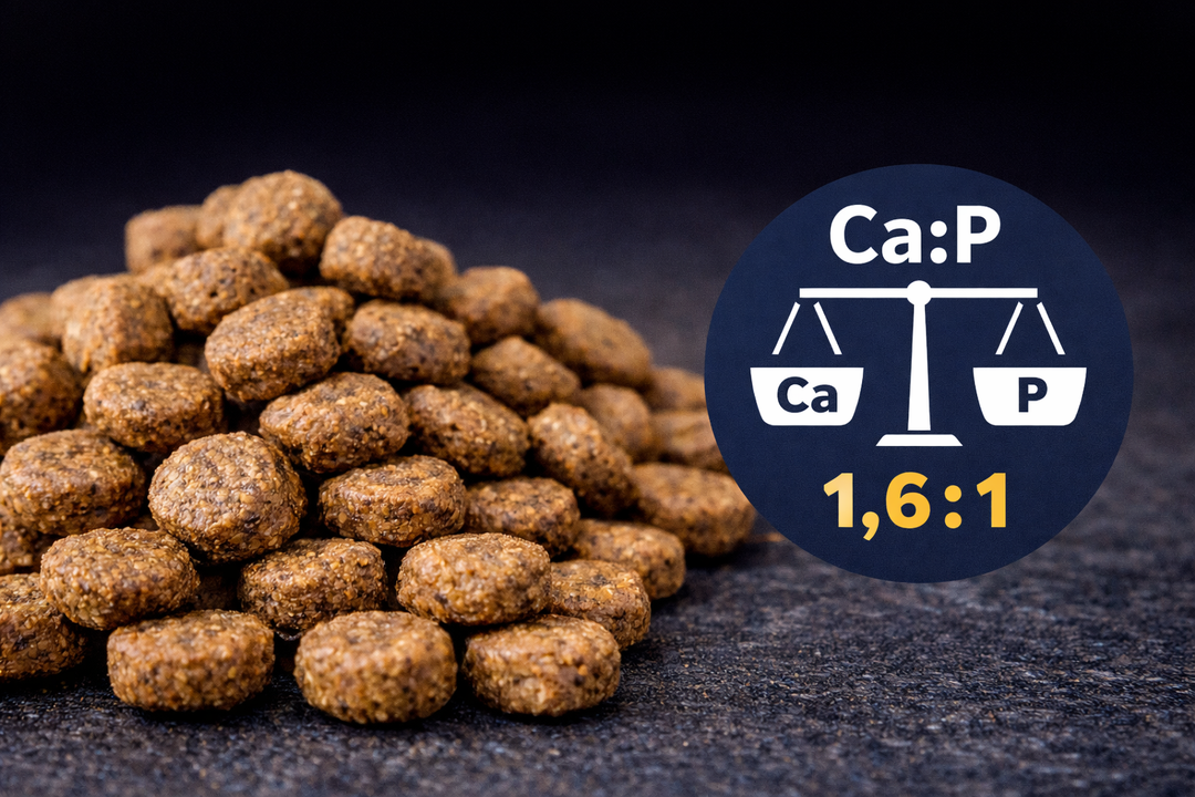 Ein ausgewogenes Calcium-Phosphor-Verhältnis unterstützt die Stabilität von Knochen, Gelenken und Zähnen. Besonders bei körperlich stark beanspruchten Hunden ist eine stabile Mineralstoffversorgung entscheidend, um langfristige Belastbarkeit und Beweglichkeit zu erhalten.