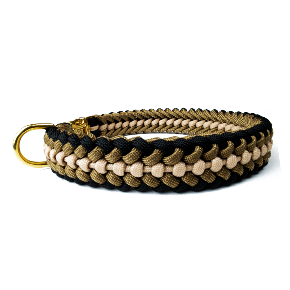 Das Hundehalsband Leo repräsentiert eine herausragende Kombination aus Langlebigkeit, Komfort und Stil. Sorgfältig aus hochwertigem Paracord gefertigt, ist es in den drei am meisten nachgefragten und universell einsetzbaren Farben - Schwarz, Grün und Mokka - handgeflochten. Das Paracord wurde mit besonderer Sorgfalt ausgewählt, da es für seine außergewöhnliche Festigkeit und Haltbarkeit bekannt ist.